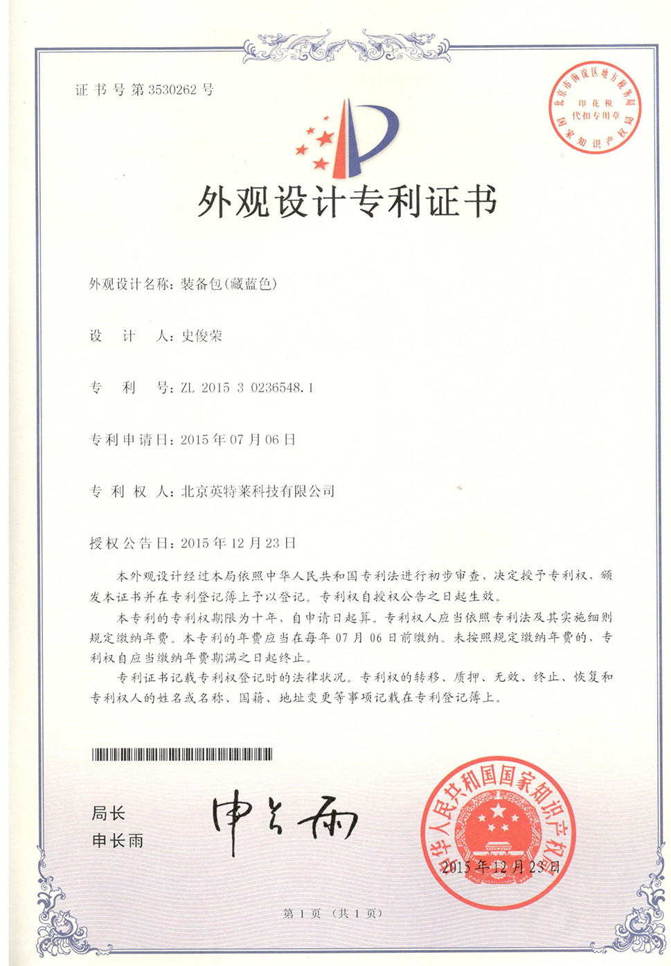 專利證書(shū)