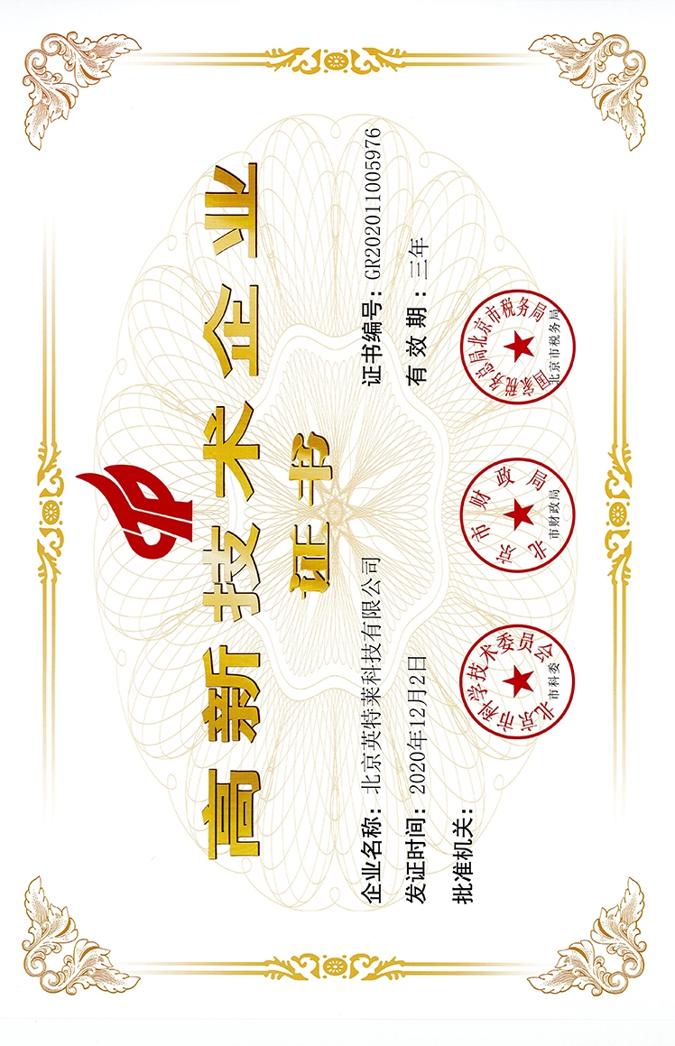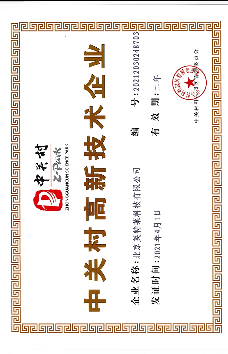 ZHONGGUANCUN HIGH TECH CERTIFICATE