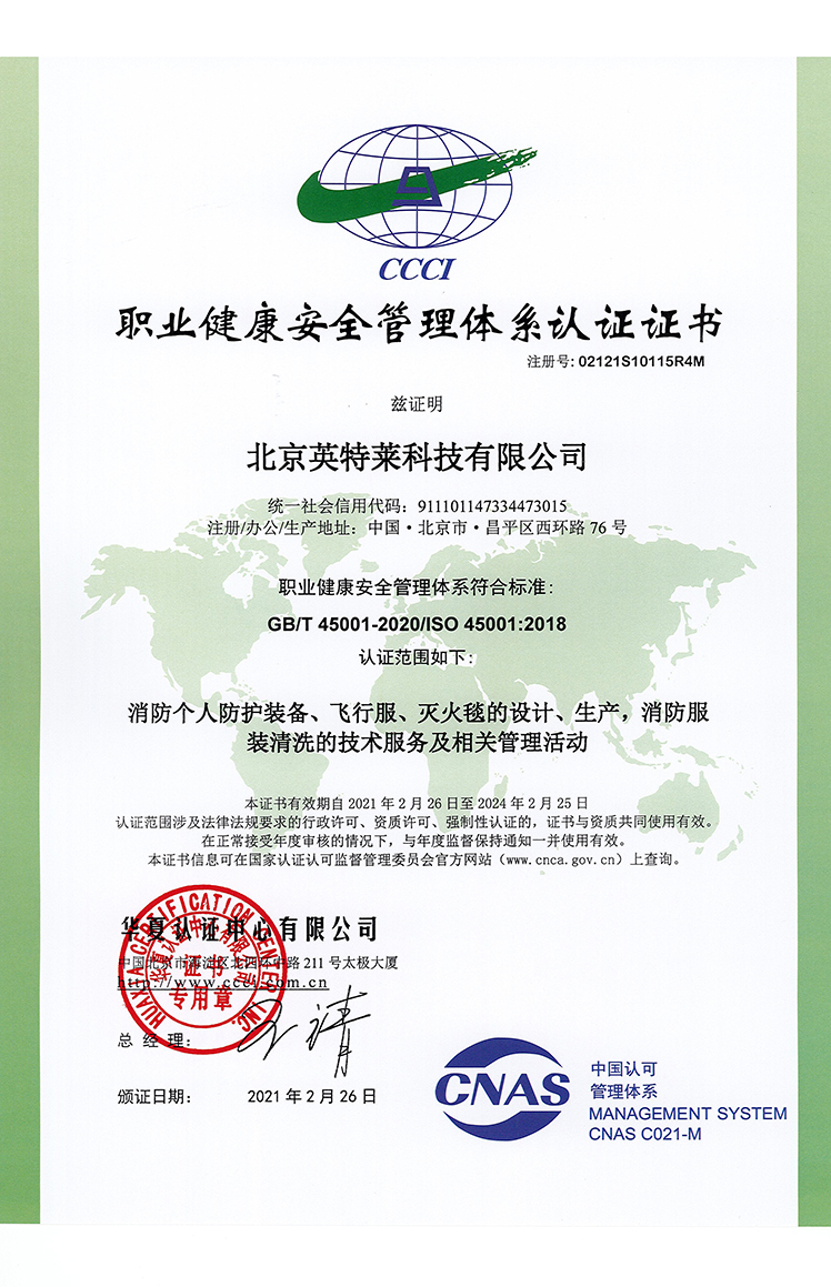 OCCUPATIONAL HEALTH AND SAFETY MANAGEMENT SYSTEM CERTIFICATE-CHINESE